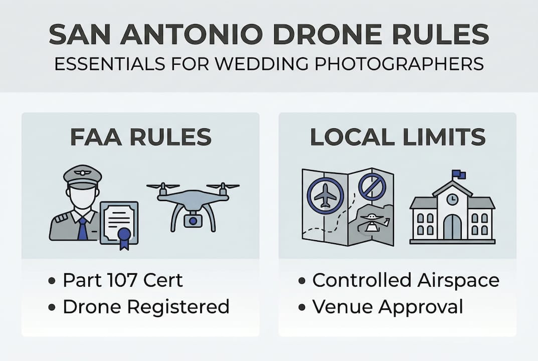 Now that you know drone wedding shots offer unforgettable views, let's address the essential rules and logistics for using drones at San Antonio venues.