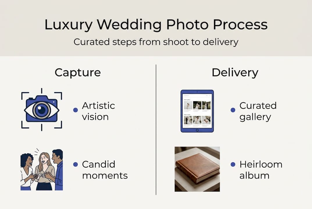 | Expert methodology | Luxury photographers blend technical mastery, emotional intelligence, and personal attention for every wedding. |
